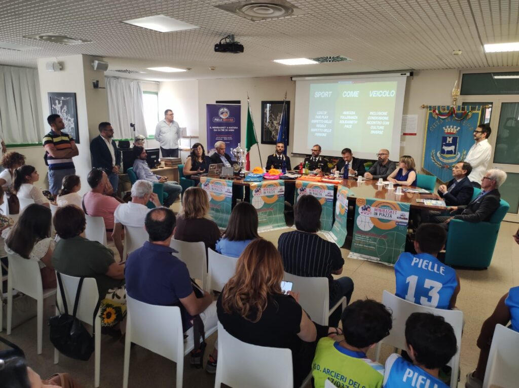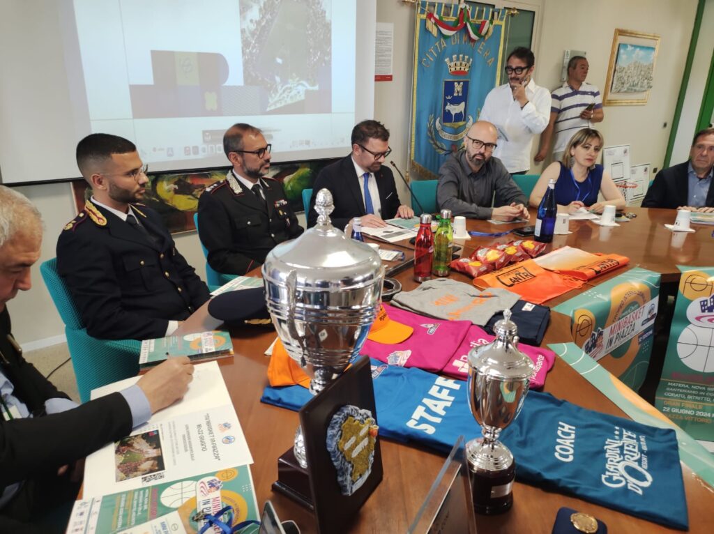 Presentata questa mattina nella sala Mandela del Comune di Matera la 32a edizione del Torneo Internazionale Minibasket in Piazza riservata alla categoria Aquilotti. Per questa edizioni saranno 48 le squadre provenienti da 4 continenti (Italia, Venezuela, Canada, Emirati Arabi Uniti, Montenegro, Serbia, Libia, Libano, Bosnia-Erzegovina e Nigeria) si incontreranno sui campi di Matera, Nova Siri, Santeramo in Colle, Molfetta, Corato e Bitritto. Al tavolo il sindaco di Matera, Domenico Bennardi, il Commissario Capo della Questura di Matera, Valerio Tornese, il tenente colonnello Gianfranco Di Sario, comandante della Compagnia Carabinieri di Matera, l’assessore comunale alla cultura Tiziana D’Oppido, il vice sindaco e assessore comunale allo sport Antonio Materdomini, il delegato di Sport e Salute, Matteo Trombetta, il presidente provinciale del CSI, Lorenzo Calia, insiema a Giovanni Cotrufo e Ilaria Martinelli del comitato organizzatore. Durante la conferenza stampa sono state presentate le novitĆ  dell’edizione 2024.
